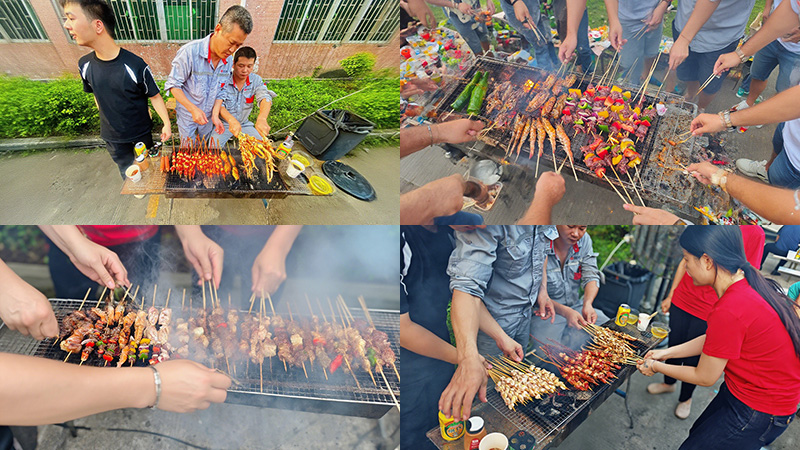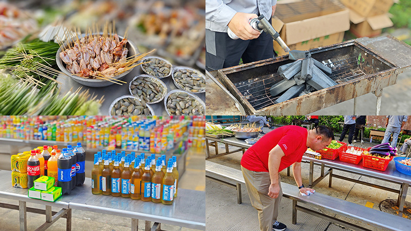 当天下午,大家齐聚在FUJ园区。领导们早早来到现场,亲自为大家准备食材,炭火已燃起,烤架上摆满了新鲜的食材。随着一声令下,烧烤活动正式开始!