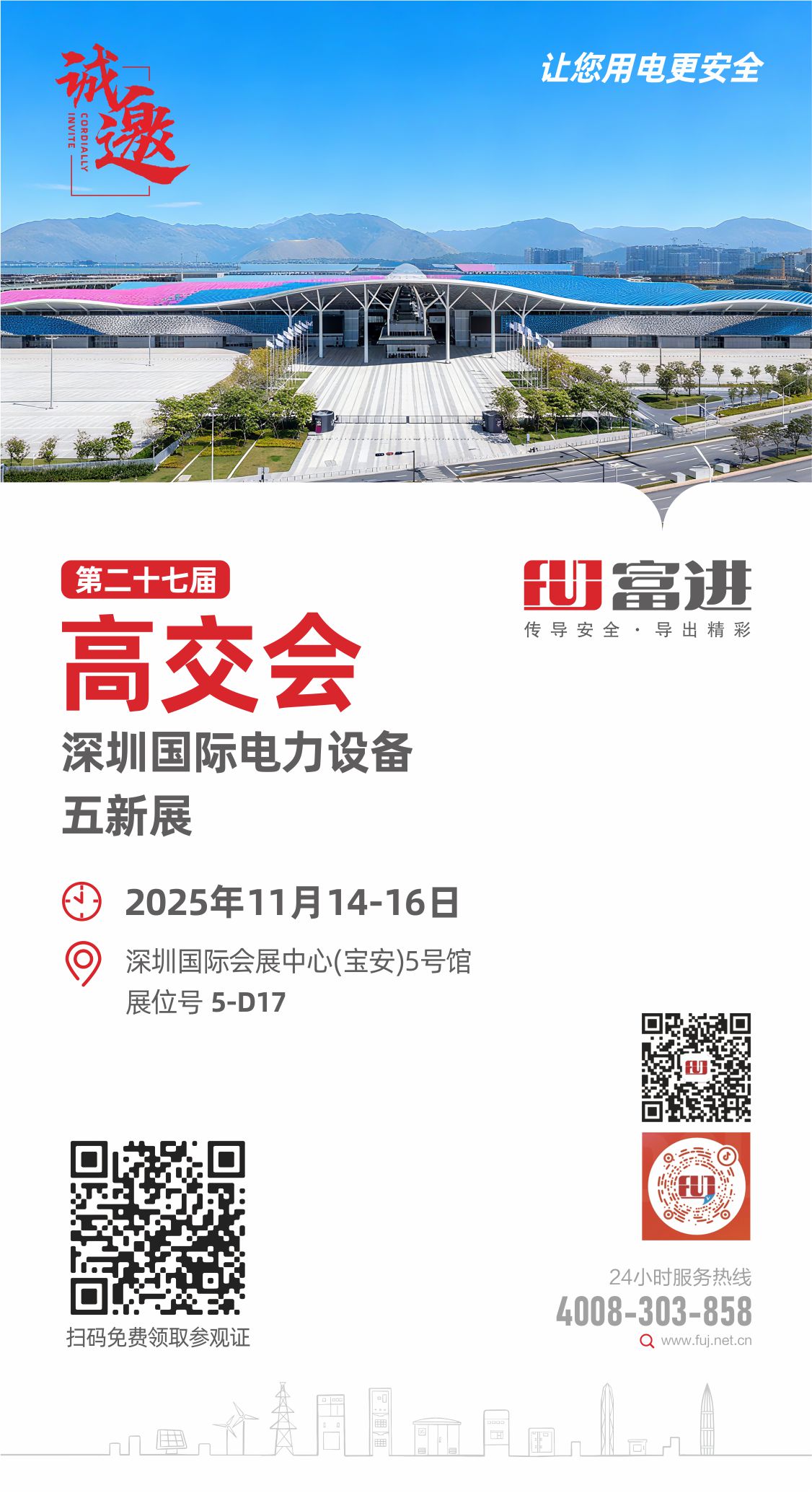 秋高气爽,鹏城再聚。深圳市富进电力设备有限公司诚挚邀请您莅临2025年11月14-16日于深圳会展中心举办的第27届高交会深圳国际电力设备五新展。