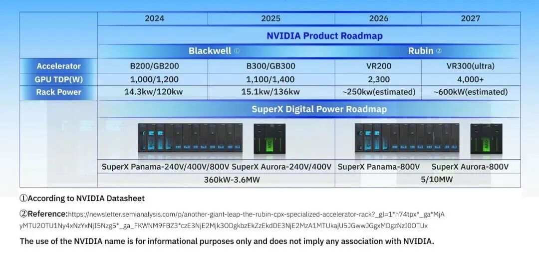 SuperX Digital Power发布两款800VDC旗舰产品,双路径解决数据中心供电瓶颈近日,中恒电气新加坡全资子公司Enervell Power Pte. Ltd.旗下合资公司SuperX Digital Power Pte. Ltd.宣布针对海外市场率先发布两款800V直流供电(800VDC)旗舰产品:SuperX Panama-800VDC新建方案:面向新建AIDC的端到端直流解决方案;SuperX Aurora-800VDC改造方案:适配现有数据中心的改造及升级直流解决方案。